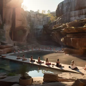 A serene yoga session beside a mineral pool, promoting wellness and tranquility in nature.